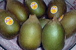 | ゴールデンキウイ | わたしのお気に入りのキウイ。初夏に登場して秋頃消えてしまうので、どうも季節限定らしい。 名前のとおり、金色で、皮に産毛が少なく、酸味よりも甘みが強いのが特徴。1個3ドルくらいで、普通の緑のキウイ(1個1ドル〜2ドル)よりもちょっと高め。キウイもわたしの朝の定番フルーツ。 ![]() |