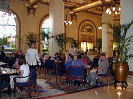| アフタヌーンティー | 有名なペニンシュラの【ロビー】のアフタヌーンティーは、いつも長蛇の列が並び、落ち着かないまさに【ロビー】でのお茶。雰囲気だけ確認しに寄って見るだけで充分。 これがペニンシュラの【ロビー】。わたしが一番お気に入りのアフタヌーンティースポットは、ペニンシュラのナナメ向かい、公園脇にある【インターコンチネンタルホテル】のグランドフロアのティーラウンジ。壁一面窓からヴィクトリアハーバー全体が見渡せ、静かで安らげる。・・・めったにしないけどアフタヌーンティーセットも優雅。 |