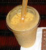 | 珍珠(女乃)茶 | ご存知台湾名物のミルクティー(台湾では街中いたるところでこの屋台が。かなりポピュラー) 香港でもチェーン展開している【仙(足宗)林】など、あちこちで見かける(もちろん台湾ほどじゃないが)。 あま〜いあま〜いアイスミルクティ(ホットもある)の中に、タピオカのお化け、グミのようなものがたくさん入ったもの。 クセになる喉越し。 ![]() ストローが巨大。これでグミごと吸い込む。いきおいよすぎると、むせるので注意。 ![]() あと、こんなもの(ミルクティorミルクコーヒーinコーヒーゼリー)もローカルスーパーで買えます。わりと美味しい。 |