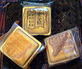 厚焼きクッキーの中にパインのほかにもマンゴー、メロンなどのドライフルーツの「餡」が入っているもの。日本人の味覚にあう、お茶請けにぴったりなお菓子。わたしのお気に入りはローカルのお菓子の名店、【奇華餅屋】のもの。ばら売りで買える(1個5ドル)ので種類も選べるし、おいしい。ちなみにここのイメージキャラクターは香港映画ではマフィアのボスなどでおなじみのエリック・ツァン!月餅片手に微笑んだりしております。![]() 意外なおすすめは「メロン味」、誰に奨めても好評。写真は左からマンゴー・メロン・パイナップル。 パインケーキは空港にも定番土産として売っているが、空港で買うのは出来ればやめましょう。不当に高いと思う。 |
