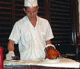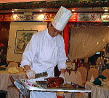 | 北京ダック | 北京ダックを香港で食べるのであれば、広東料理レストランなどではなく、北京レストランへ! 本場北京流の北京ダックは皮だけなんてお上品なものではなく、身も一緒に食べる豪快なもの。こちらをぜひ体験していただきたい。 今わたしのお客さん接待定番のレストランは北京で有名な老舗の香港店、【全聚徳】(湾仔)。 でも、以前は【京香楼】(銅鑼湾)によく行っていた。一応ジャッキー・チェンが来店したときの写真とか入り口に飾ってあったりしたんだけど、2002年夏、気がついたら突然閉店していた。やはり【北京ダック】以外の料理はどれもイマイチだったというのが敗因か? 左【京香楼】(つぶれた)、右【全聚徳】 【全聚徳】 湾仔港湾道26号 華潤大厦(高座)4楼 Tel:2884-9088 |